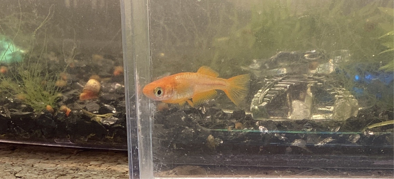 赤みの強さが魅力のひかりメダカで、横から鑑賞するのがおすすめです❤️